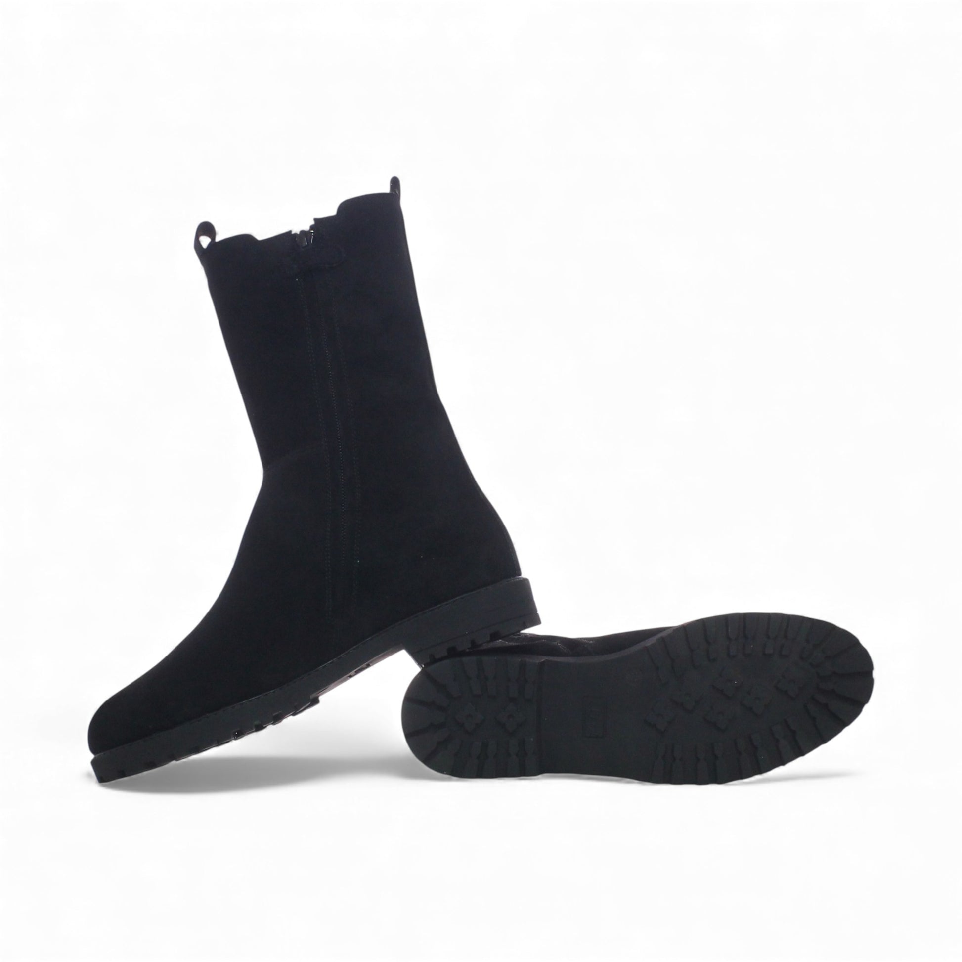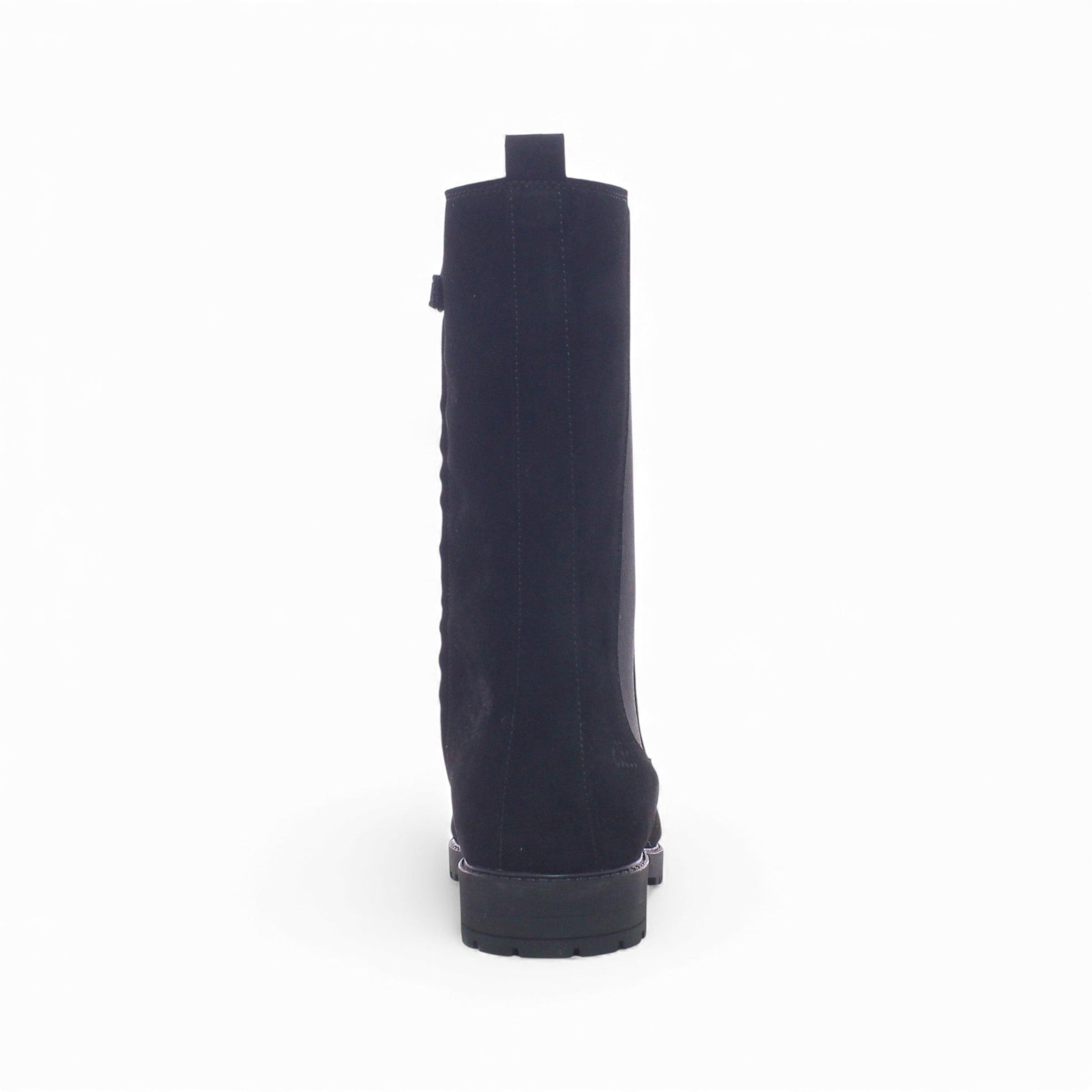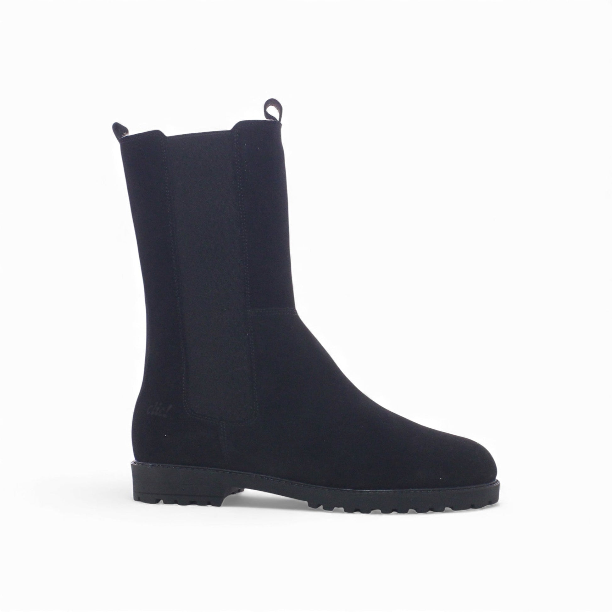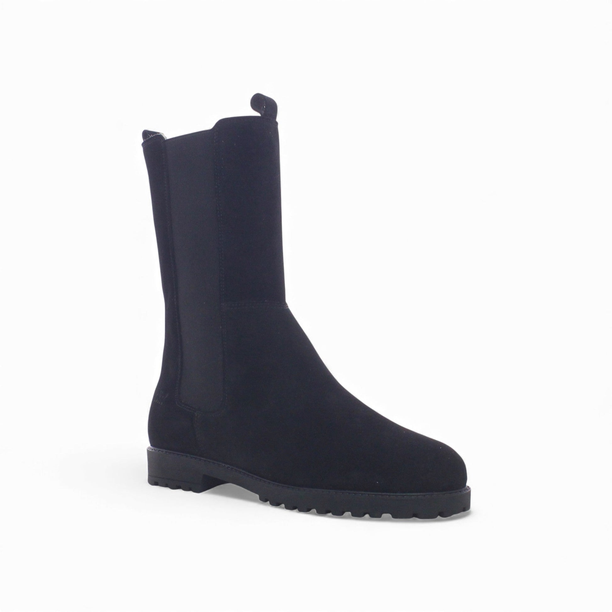 Alliez confort et style avec nos bottines Chelsea mi-hautes en cuir daim noir.
