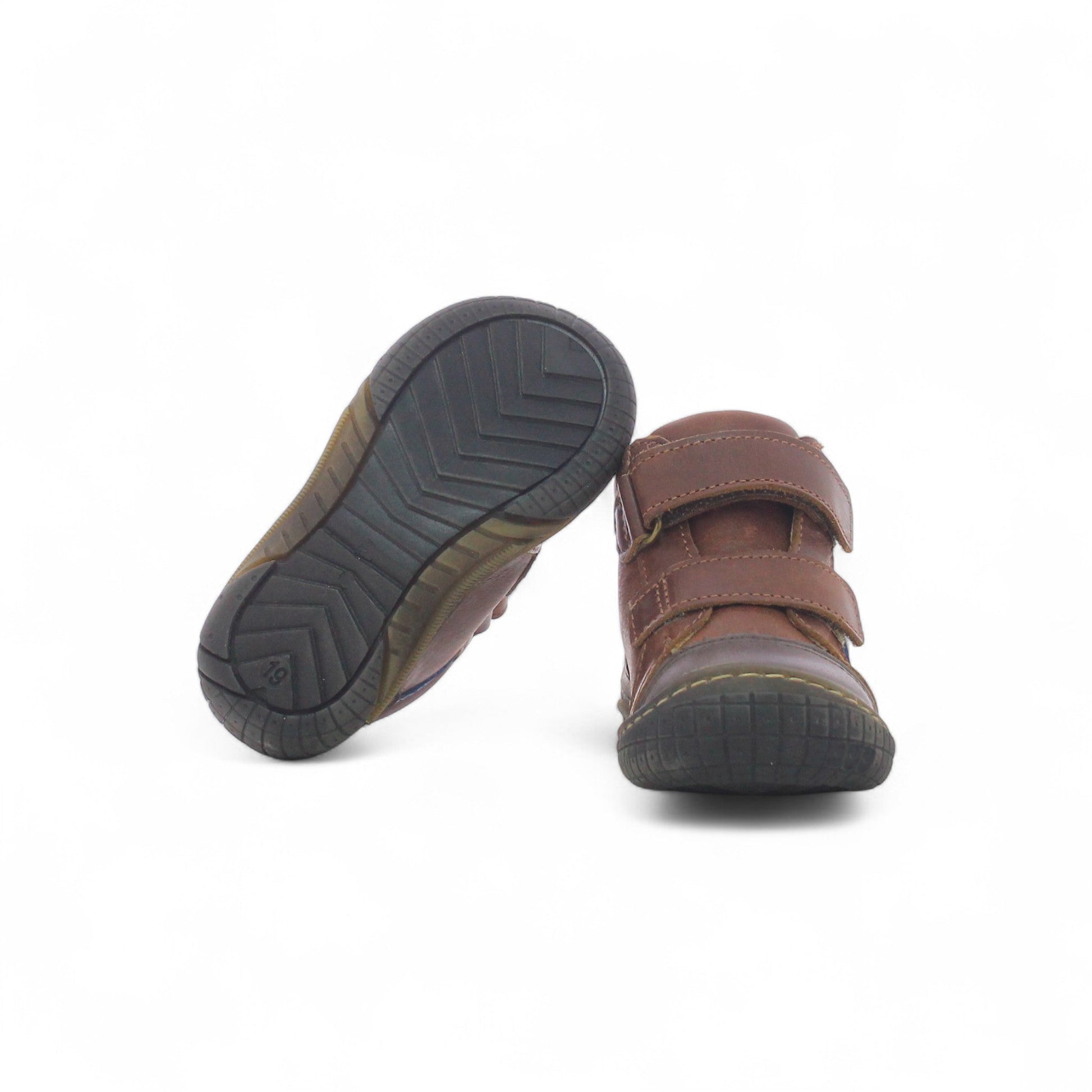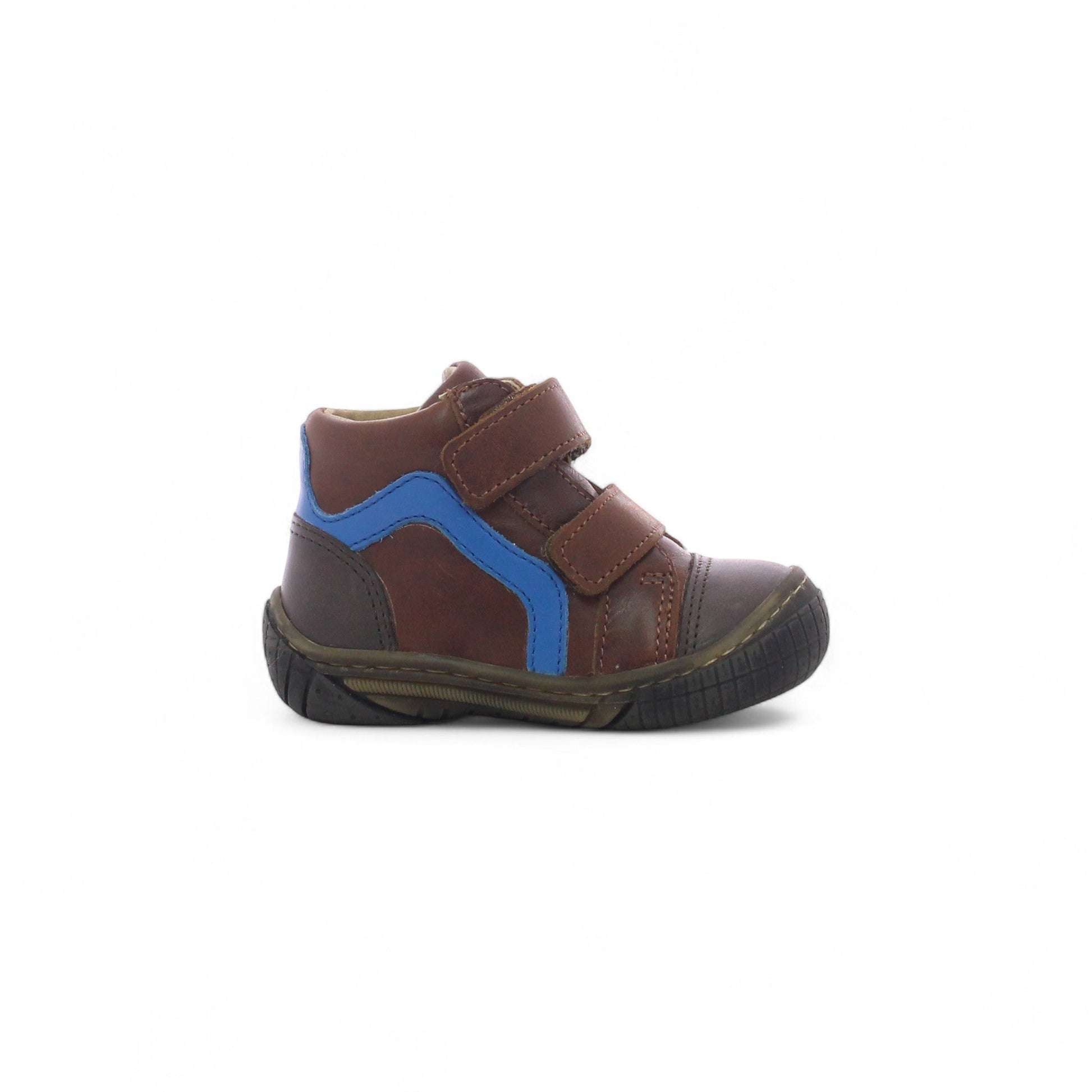 Prêts pour l'aventure ! Ces bottillons robustes allient un cuir marron chaleureux à des touches de bleu électrique audacieuses. Conçus pour soutenir les petits pieds dans toutes leurs explorations, ils offrent confort et maintien grâce à leur semelle spéciale premiers pas et leurs fermetures faciles. Idéales pour les jeunes explorateurs qui ne reculent devant rien !