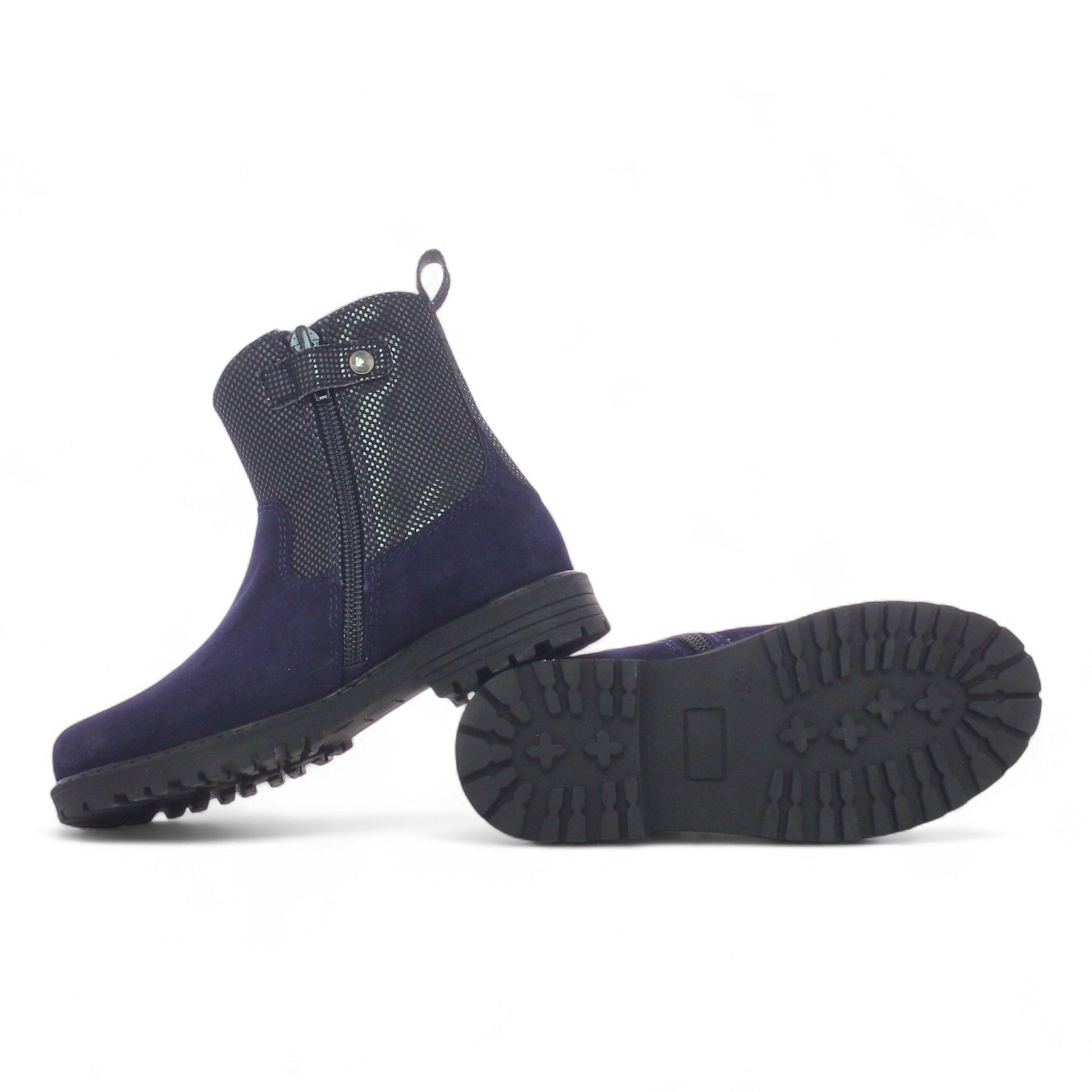 Apportez une touche de magie aux tenues de votre enfant avec ces bottines en cuir bleu marine ornées d’une étoile pailletée sur le côté. Leur design moderne et leur semelle robuste assurent un confort optimal et une excellente adhérence. Faciles à enfiler, elles sont parfaites pour les aventures du quotidien tout en gardant un style unique et tendance. Des bottines idéales pour briller à chaque pas !