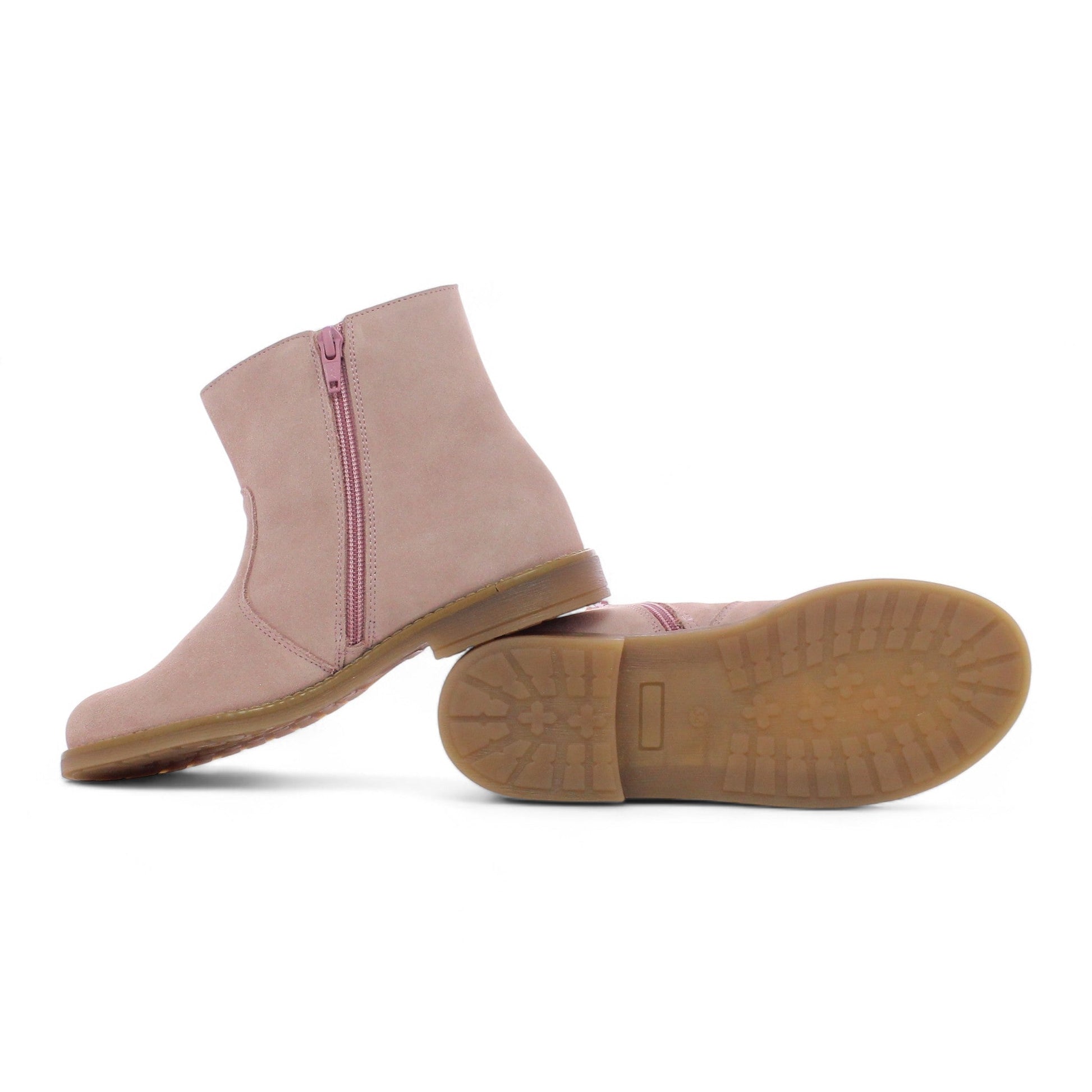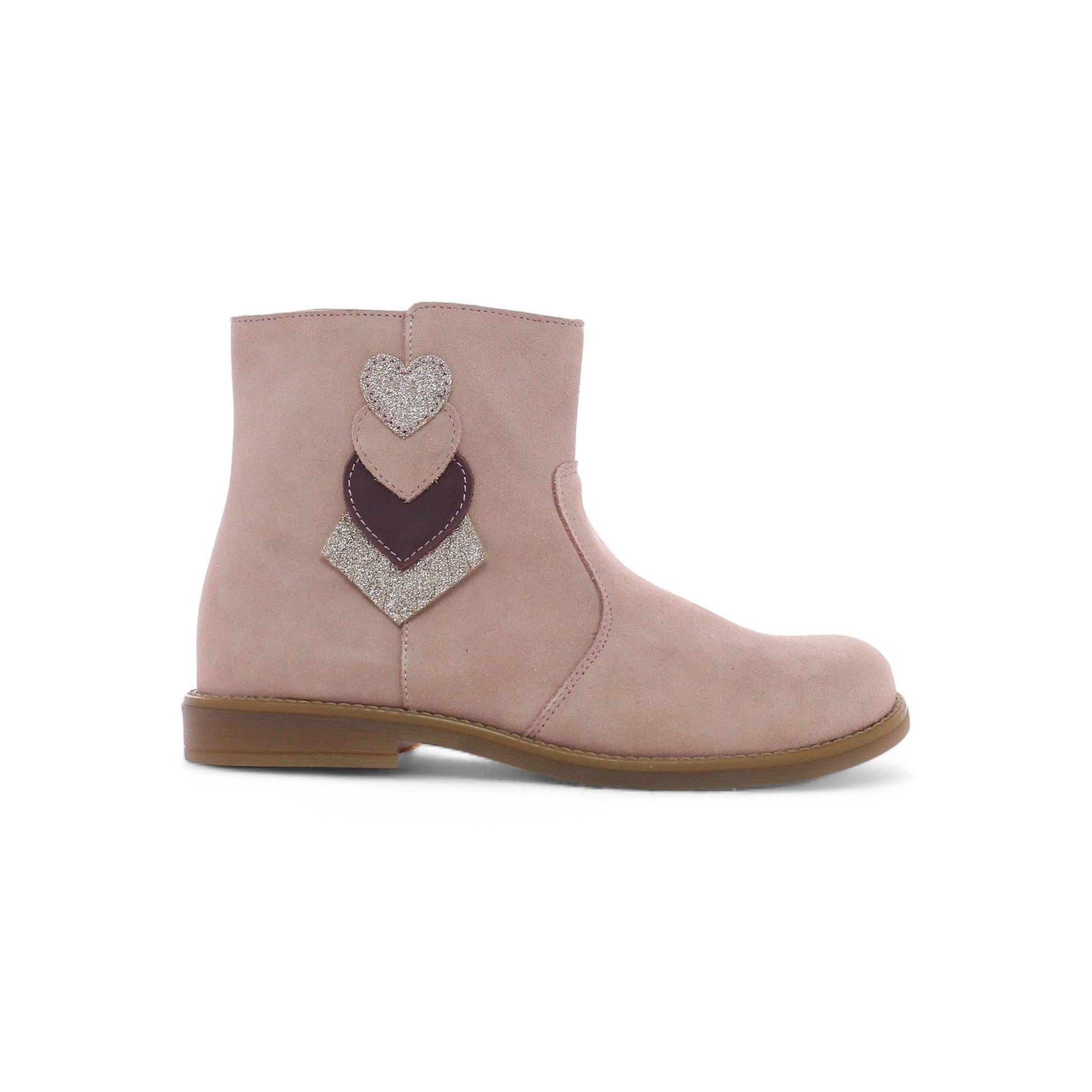 Craquez pour ces bottines fille en daim véritable rose poudré. Détails cœurs pailletés et fermeture éclair latérale pratique. Style doux et tendance pour l'hiver et l'automne.