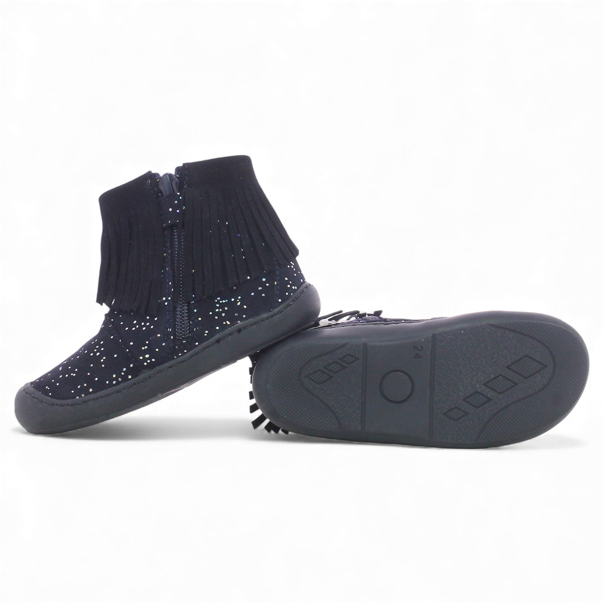 Voici le modèle Frimousse de notre gamme Flexi, spécialement pensée pour les premiers pas des petites exploratrices! Cette bottine en cuir daim. Spécialement conçue pour accompagner les tout-petits dans leurs mouvements, offre souplesse, légèreté et maintien optimal du pied.