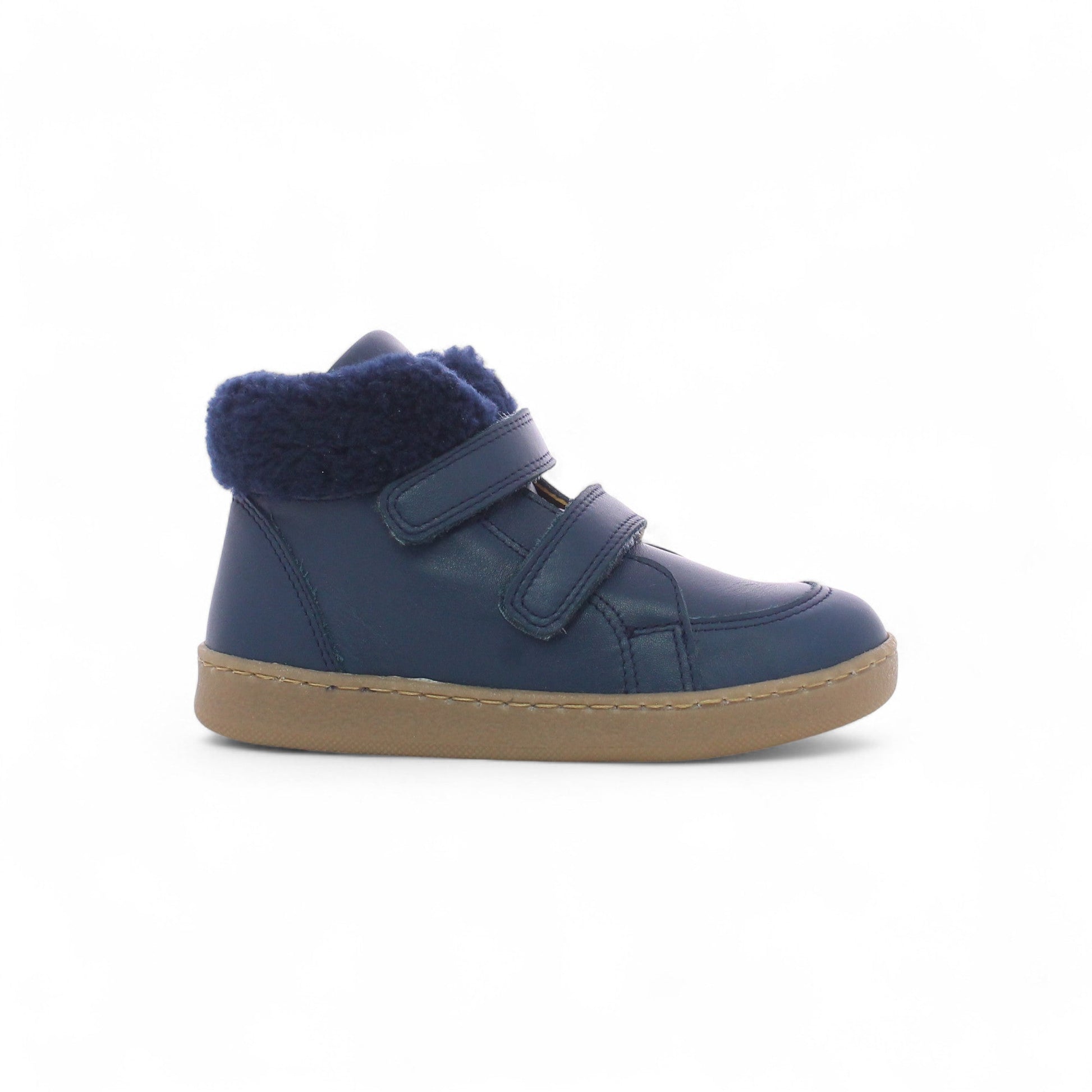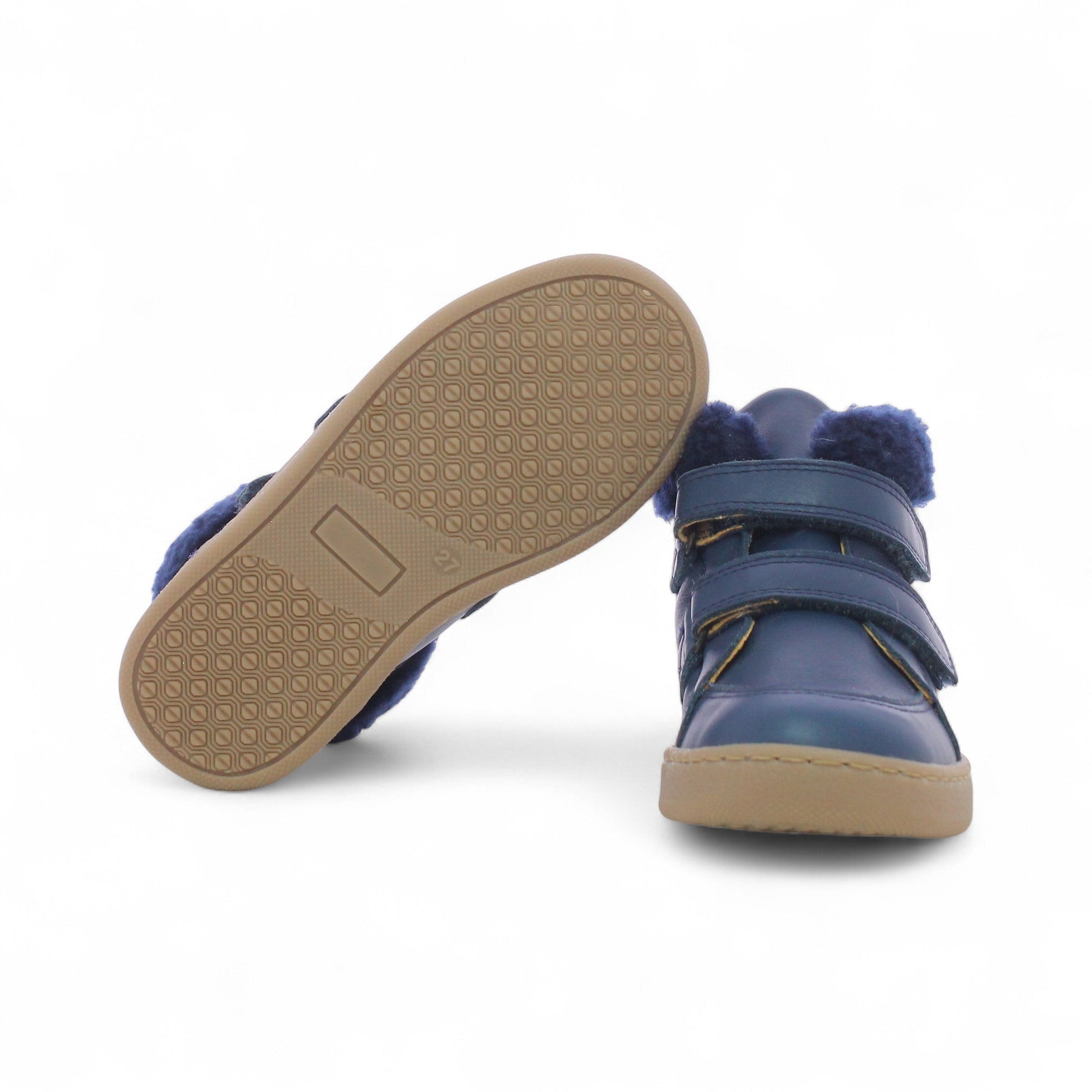 🧣🌨️ Cette basket montante pour enfant en cuir véritable bleu marine est idéale pour l’hiver !