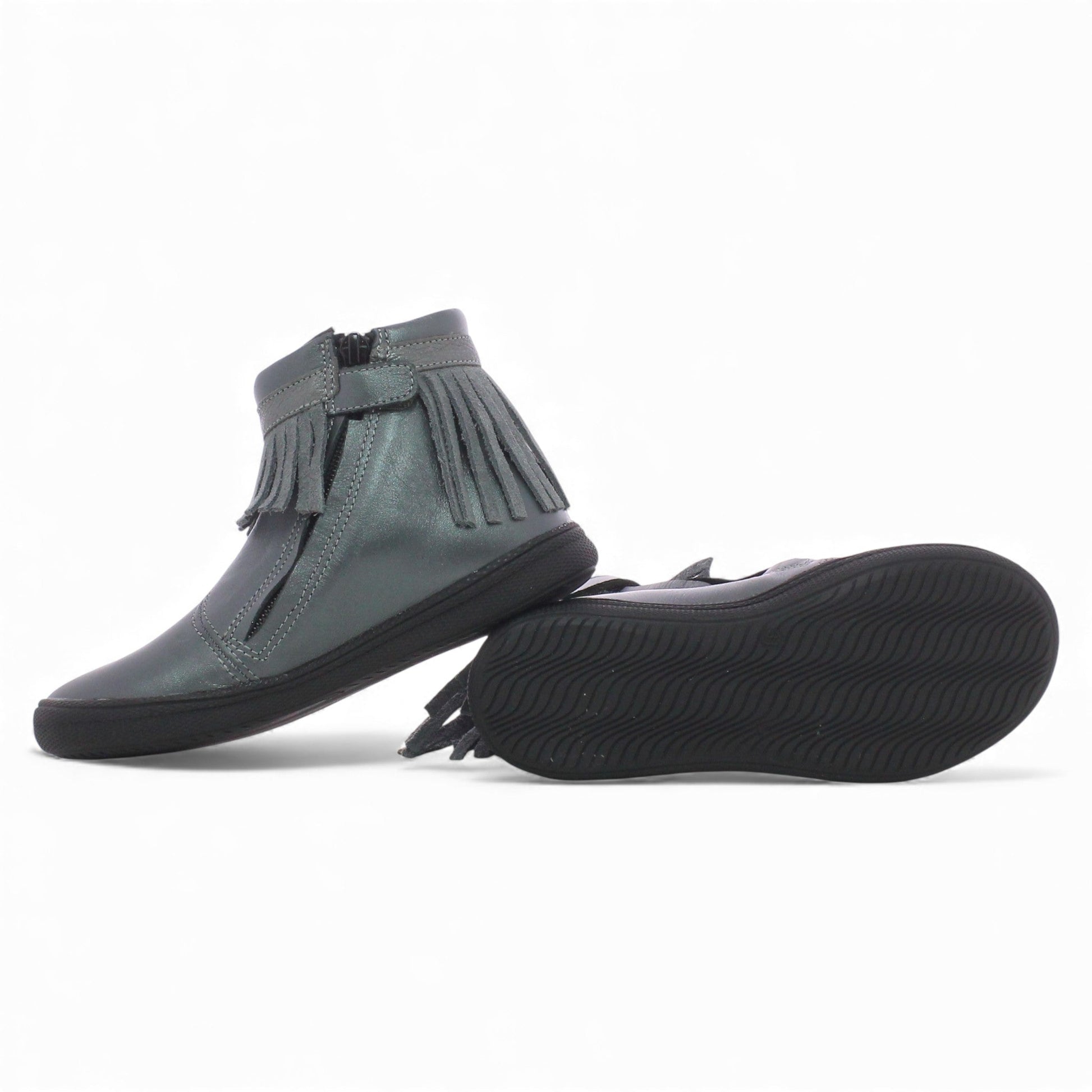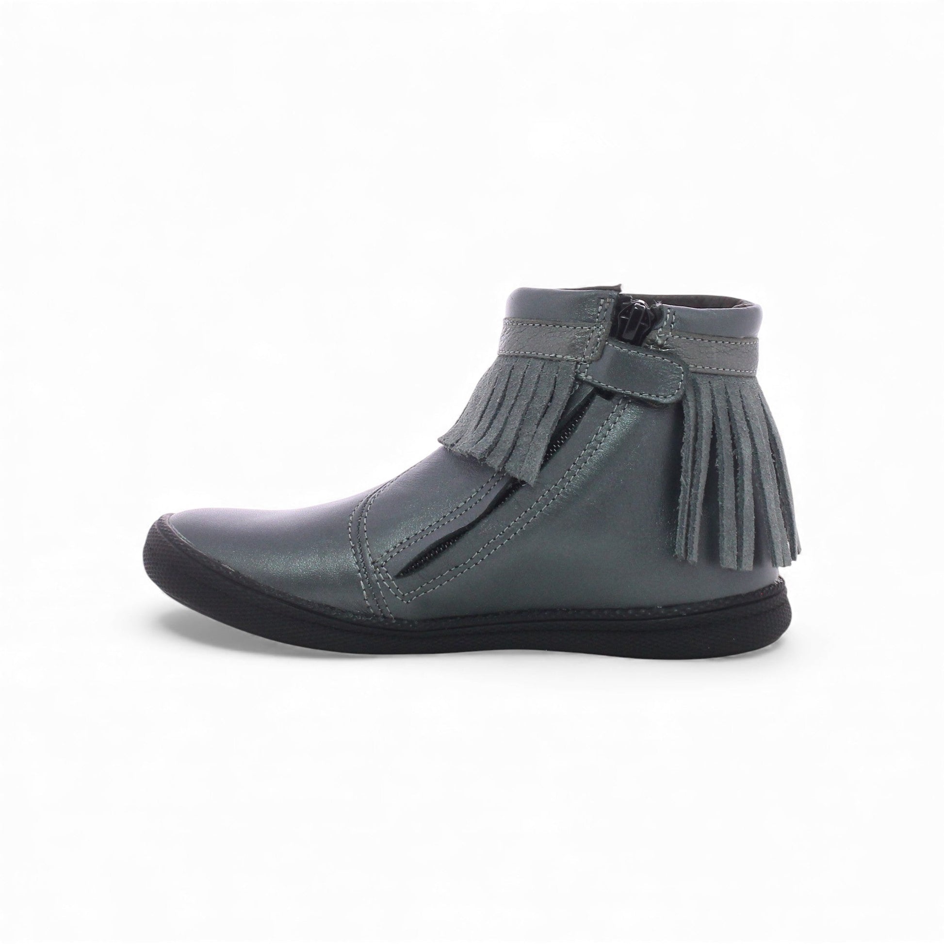 Sa jolie couleur gris métallisé et sa frange décorative lui donnent un style tendance et original, idéal pour accompagner toutes les tenues du quotidien. Conçue en cuir souple de haute qualité, elle assure confort, maintien et durabilité. La semelle légère et antidérapante offre une marche stable, tandis que la fermeture latérale facilite l’enfilage. Une bottine pratique, élégante et parfaite pour la saison !