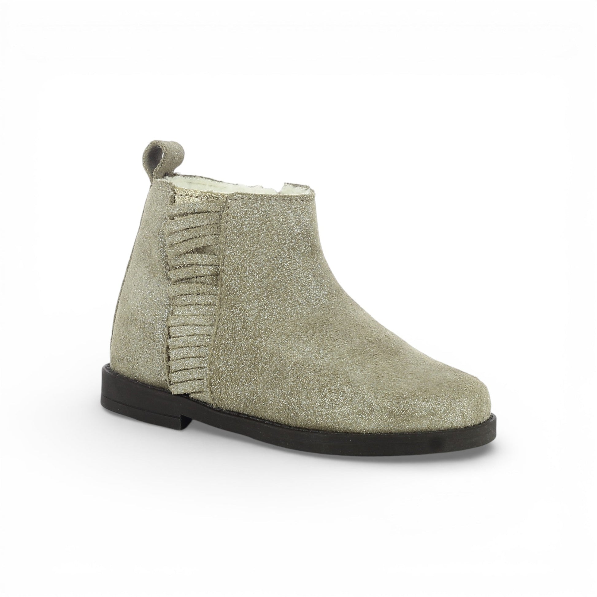 Apportez une touche chic aux tenues de votre fille avec cette bottine fourrée à franges en cuir véritable finition irisée. Sa fourrure en laine de mouton véritable garde les petits pieds bien au chaud!