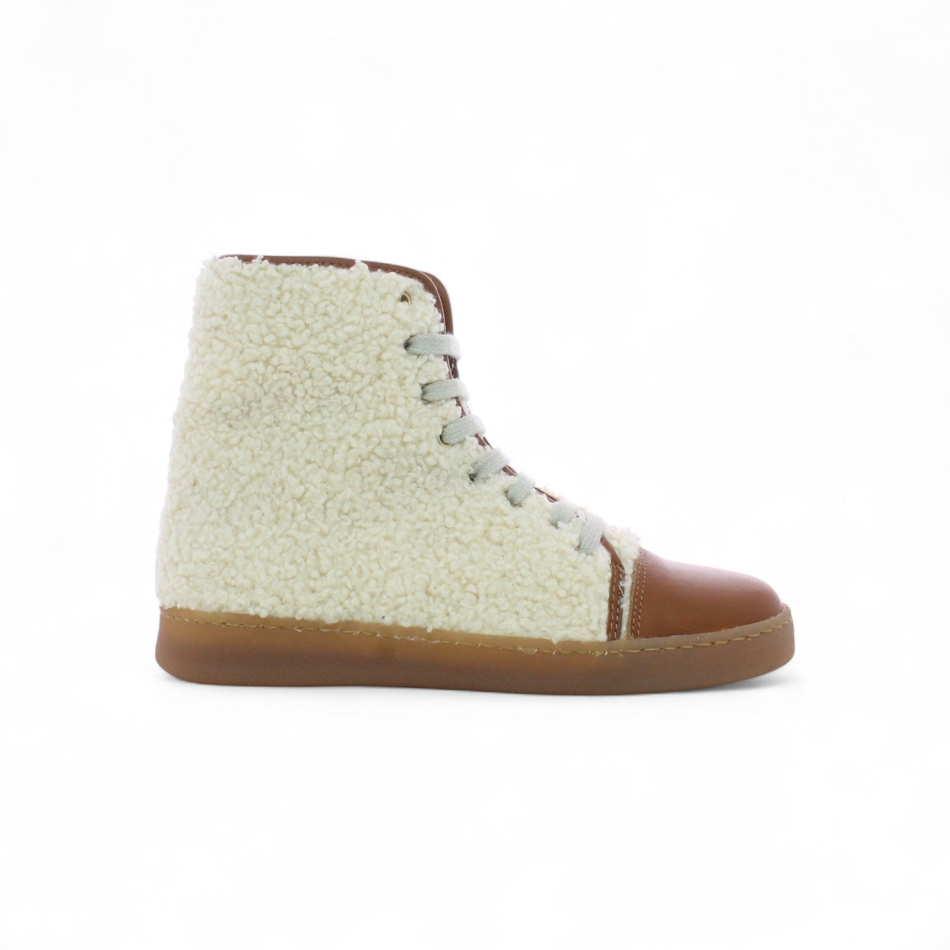 👟🐑Découvrez la bottine qui allie le look sportif d'une basket mode au maintien d'une chaussure montante. Avec son design tendance marqué par une tige en peau de mouton, et ses lacets accessoires elle ne passe pas inaperçue! Super stylée cette bottine basket!