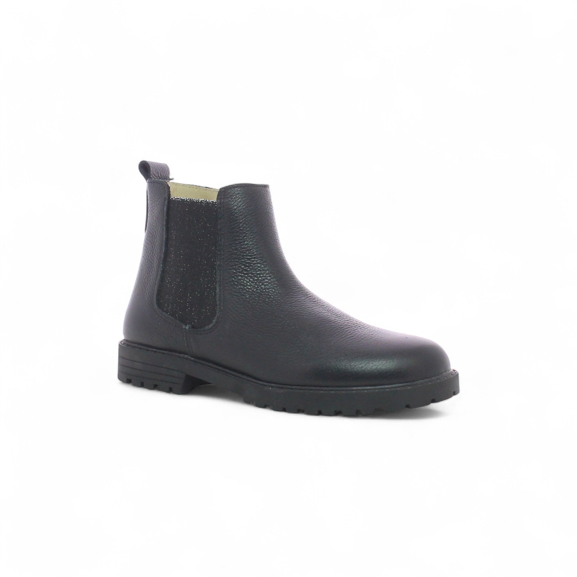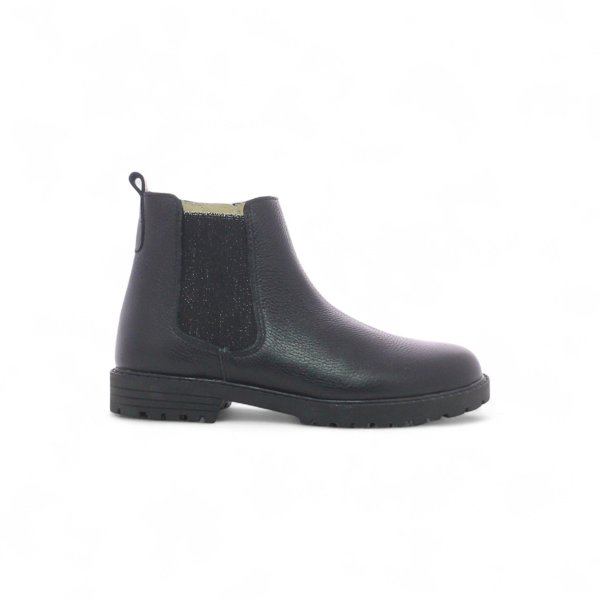 Élégante et intemporelle, cette bottine Chelsea noire en cuir grainé véritable est un incontournable. Facile à enfiler grâce à son élastique pailleté et sa fermeture éclaire sur le côté, elle offre un confort durable avec sa semelle crantée robuste. Parfaite pour un look chic et décontracté, cette bottine junior est le 💎 must have 💎 de la saison!