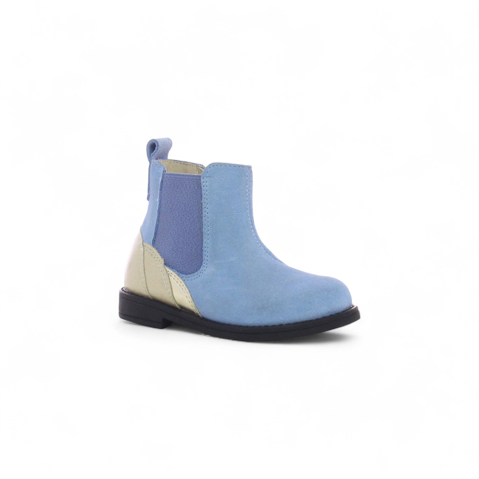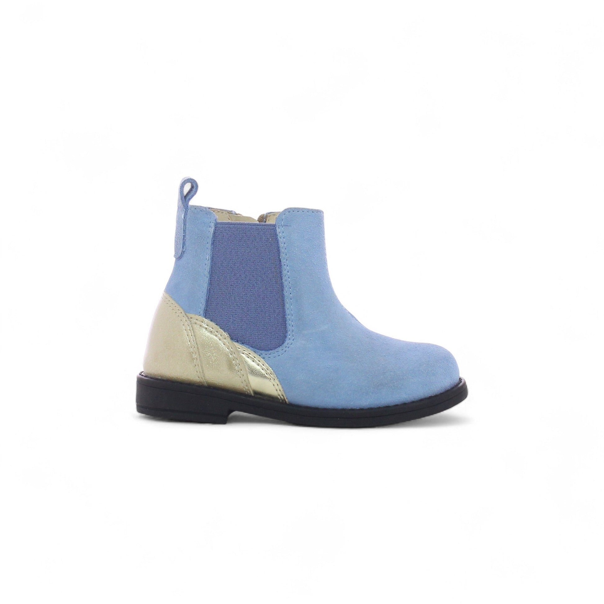 😻Alerte Mignonnerie! avec la bottine Chelsea en cuir daim, rehaussée d'un empiècement cuir or métallisé pour un look chic et festif. La fermeture éclair latérale et l'élastique assurent un enfilage facile et rapide, parfait pour les pieds des petites filles qui aiment les looks girly!