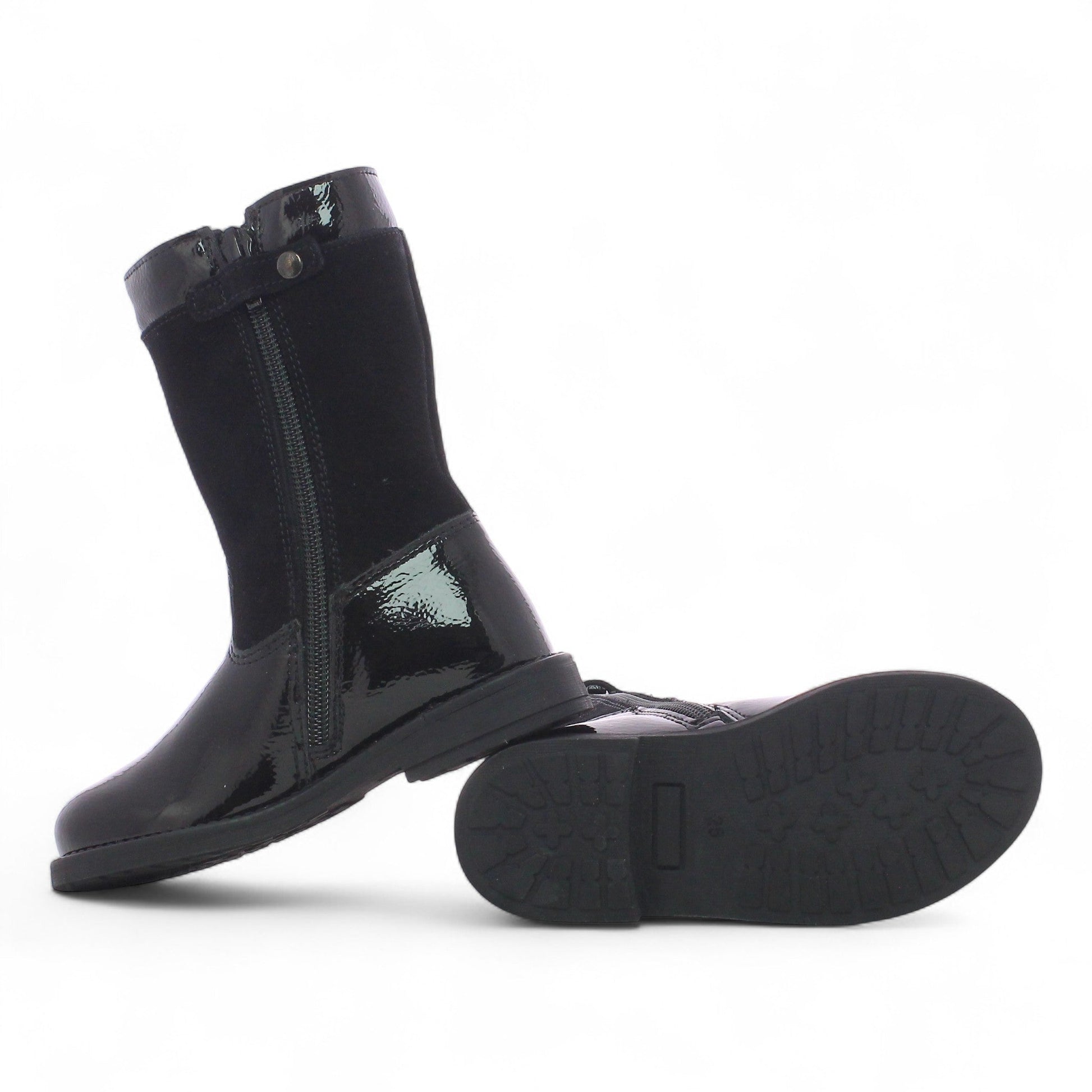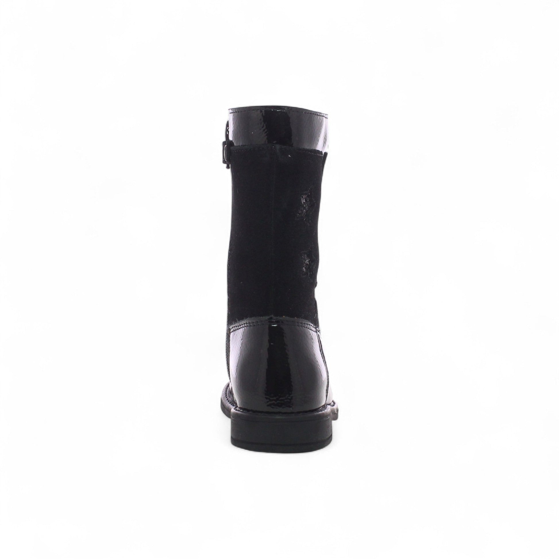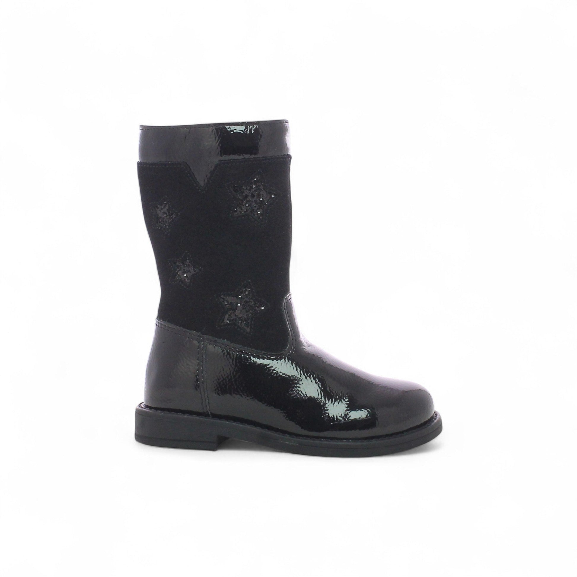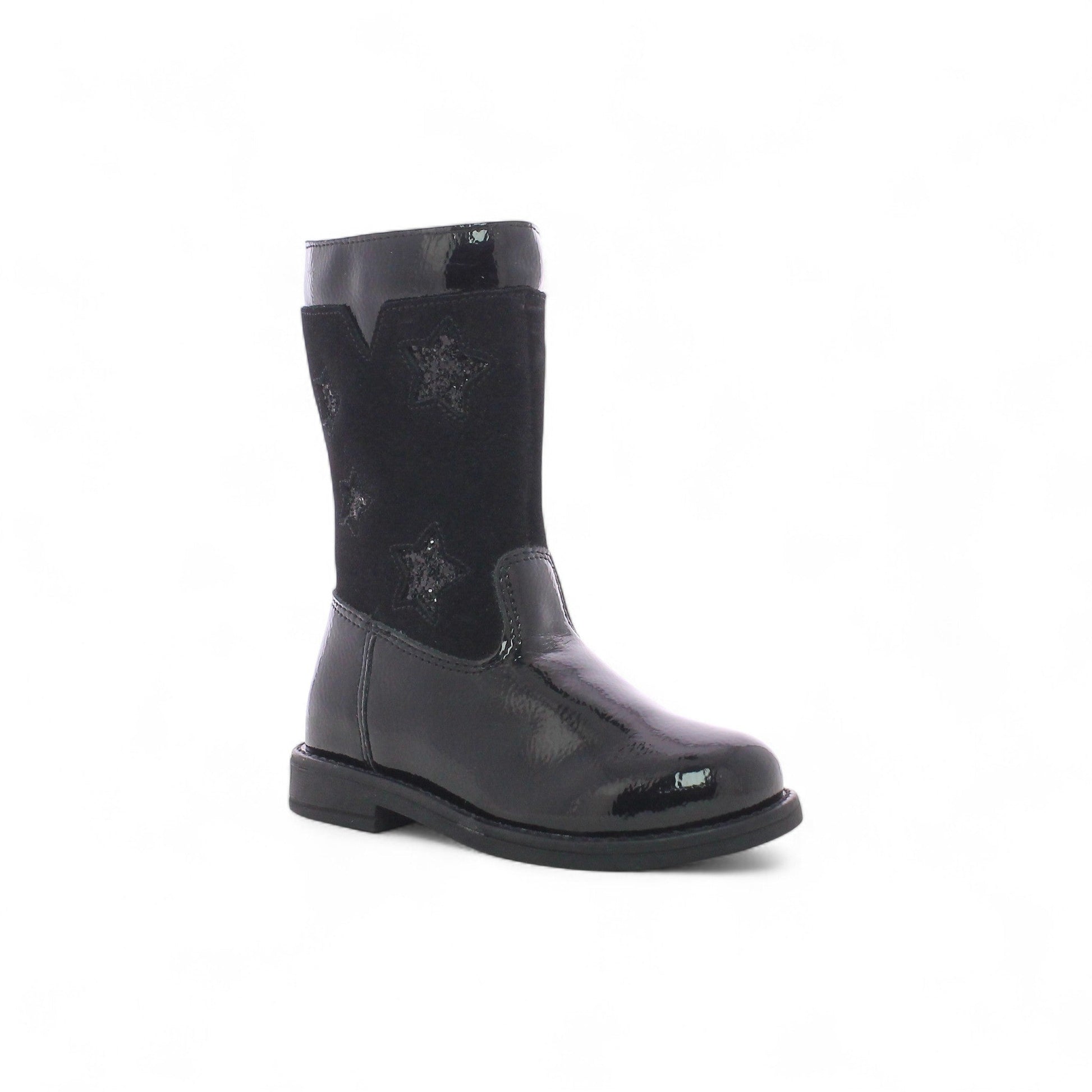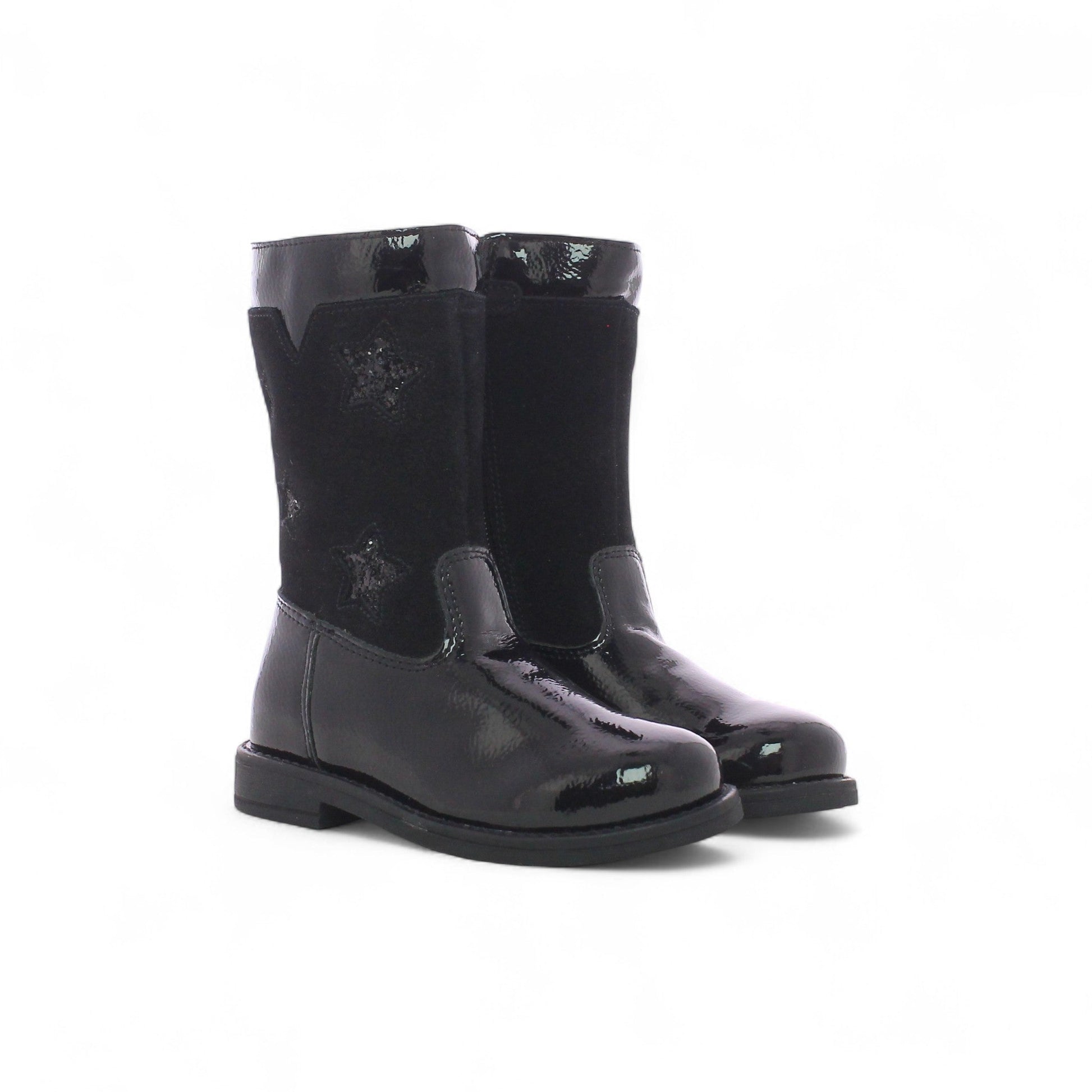 🌠🌠🌠Illuminez les pas de votre petite demoiselle avec cette botte mi-haute noire bi-matière, combinant cuir verni et daim doux. Les étoiles discrètes en relief ajoutent une touche de fantaisie chic à cette botte facile à enfiler et à entretenir. Un modèle tendance pour la saison.