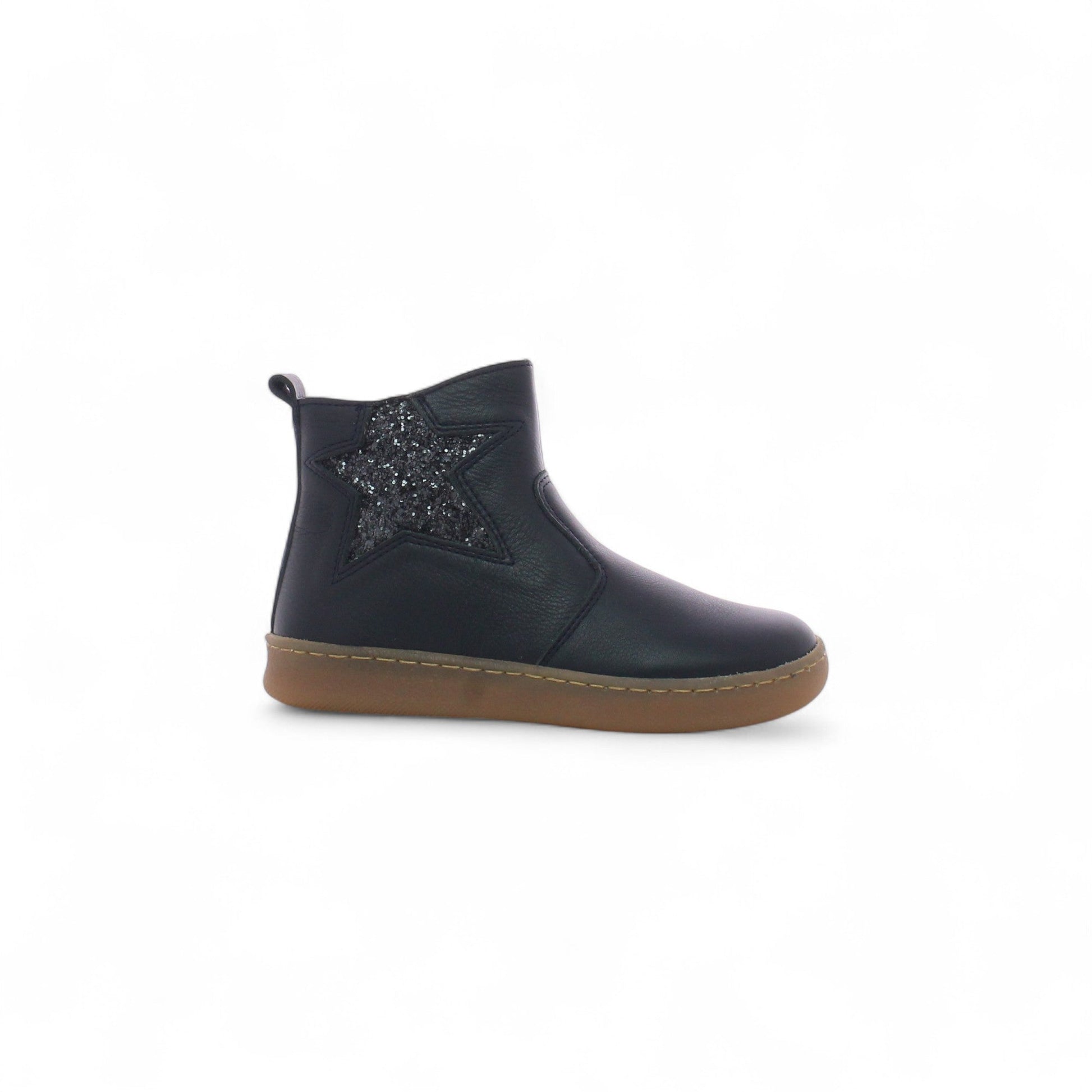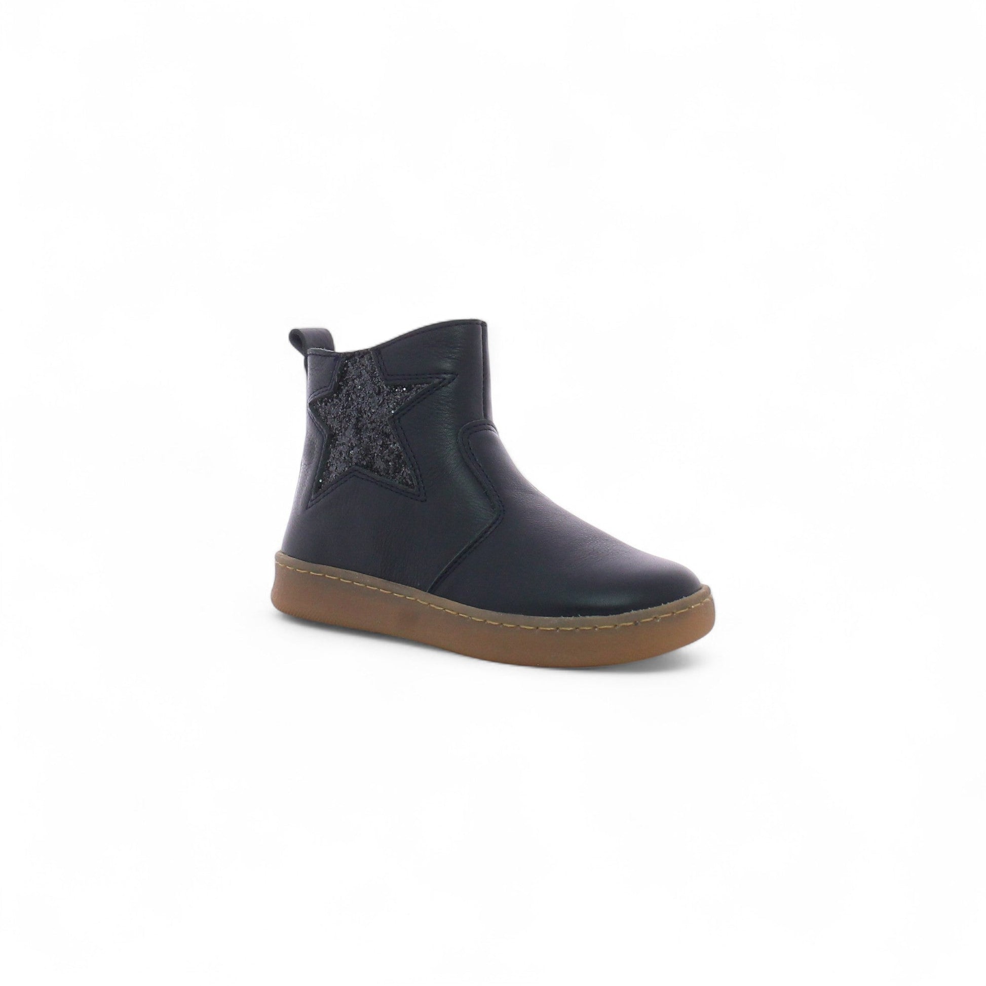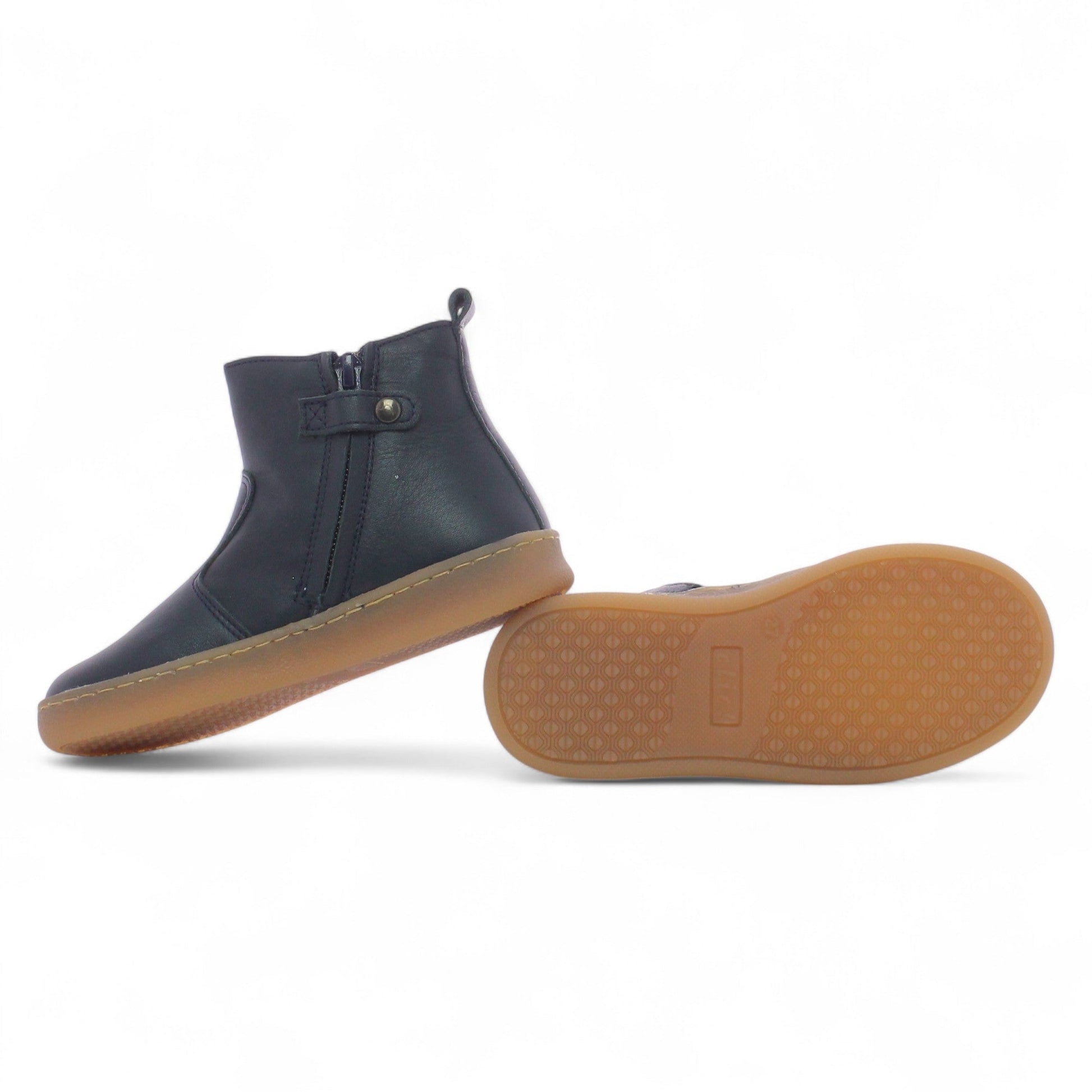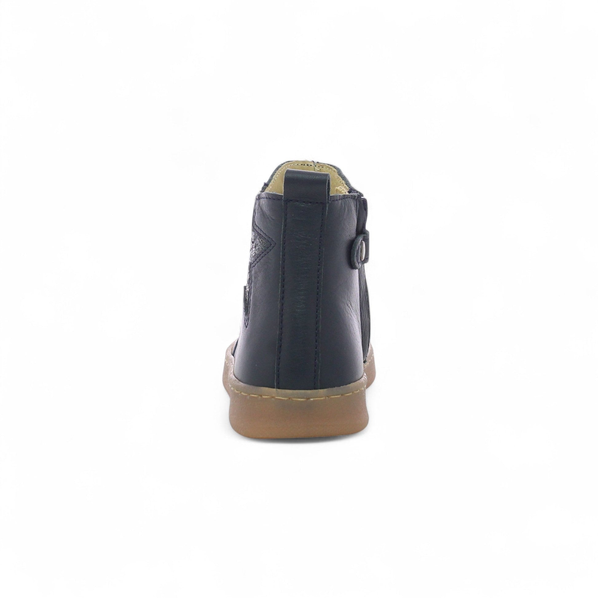 Ces bottines montantes en cuir veritable bleu nuit offrent un design moderne et ludique. Conçues spécialement pour les enfants, elles allient style, confort et durabilité grâce à leur fabrication en cuir véritable et leur semelle ultra souple en caoutchouc.
